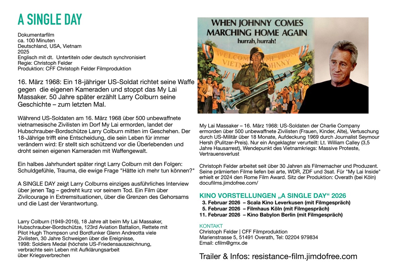 Die Fragen von 1968 sind die Fragen von 2026: Wie weit geht Befehlsgehorsam? Wann wird aus Mittäterschaft Mitschuld? Was kostet es, aufzustehen? Überall dieselben Mechanismen. Überall derselbe Reflex: „Das waren Einzeltäter.“ „Das war eine Ausnahme.“ Nein! Larry Colburn hat bewiesen: Es ist nicht kompliziert. Es ist nur schwer.